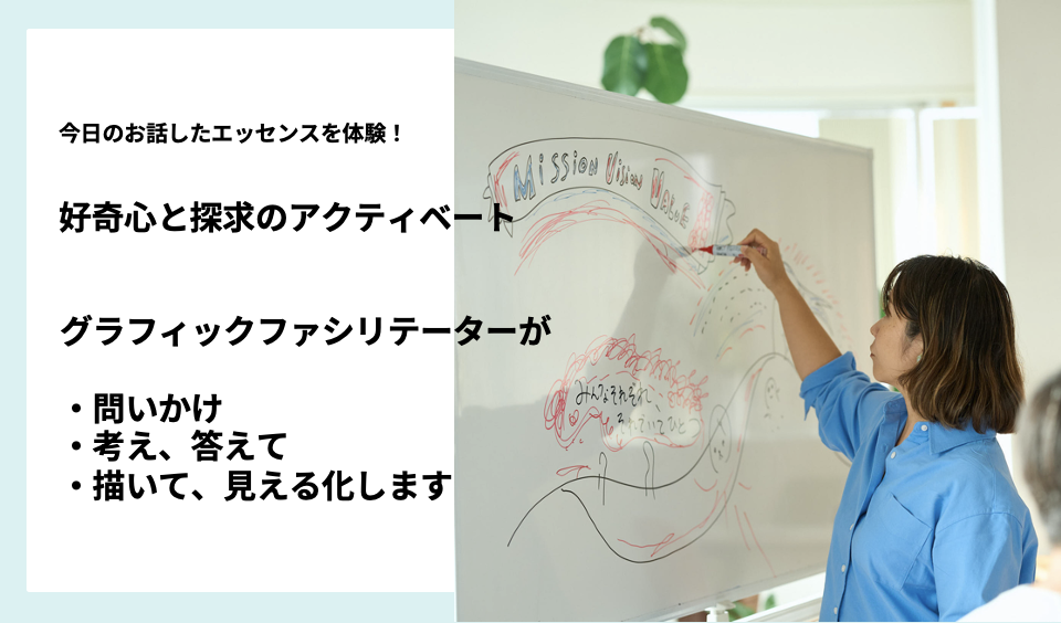 最後まで記事をお読みいただいた方で、私たちとのお仕事に興味が湧いた方へ、今回お話しした「好奇心と探求心のアクティベート」を体験できる通常3万円の「組織/個人のグラフィックレコーディングセッション(90分間)」を、今回1月末までの期間限定で無料でご提供します。(応募者多数の場合、抽選させていただきます)。